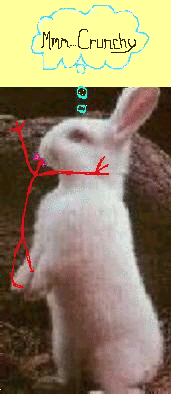 NIGHT OF THE LEPUS!!! This classic action/thriller/sci-fi movie features genetically enhanced meat-eating bunnies who kill people and wreak general havoc. Bunny likes this because it shows that bunnies are not going to take being laboratory animals lying down. Hrakas on those evil scientists! They get their just dessert in this flick! |